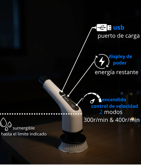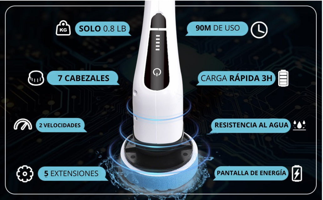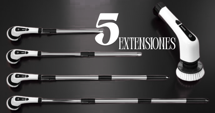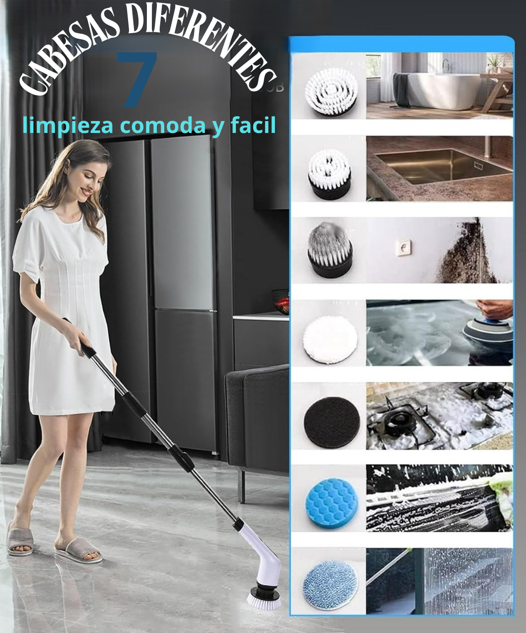 Limpiador eléctrico giratorio con 7 cabezales y 2 modos y 5 extensiones